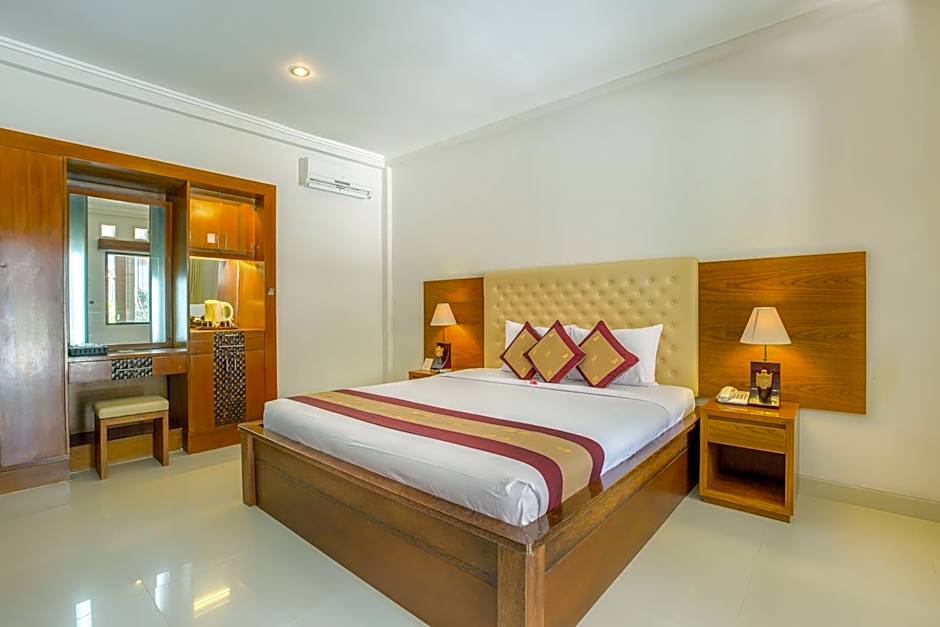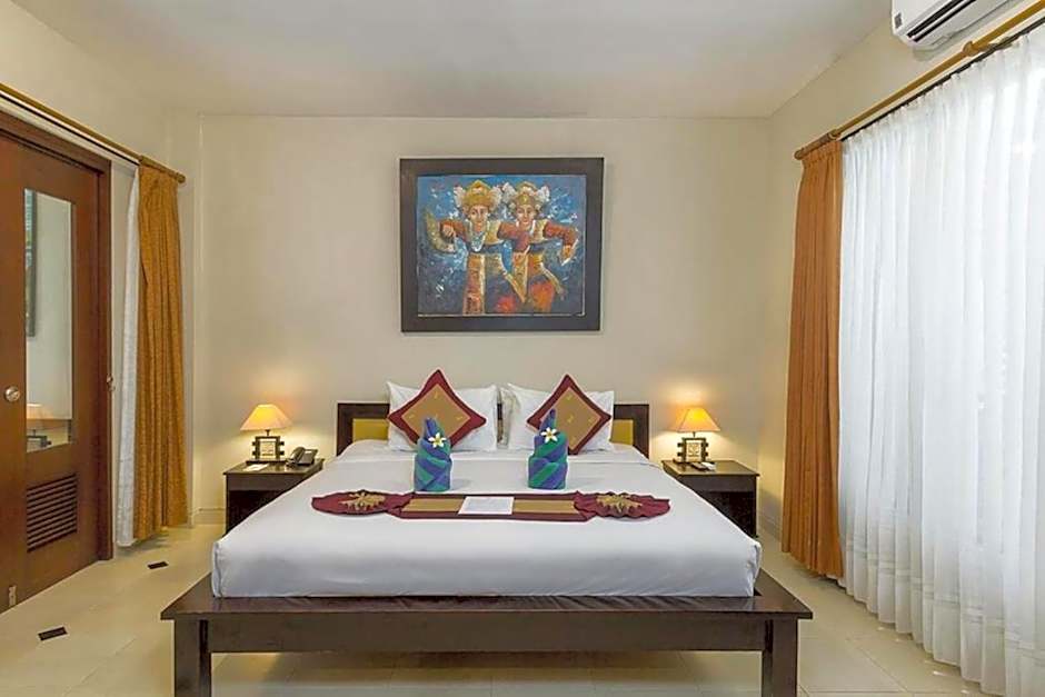 This room features modern interiors and views of the pool. It has a flat-screen TV and a mini-bar.